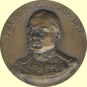 Vz. borstbeeld Frans Dunkler in militair uniform. Kz. namen en jaartallen