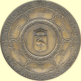 kapelmeesters rondom Haags gemeentewapen. Brons 59,7 mm., JMP 1932, pag. 85, nr. 118. Lichte vlekjes voor- en keerzijde. Prachtig. € 90,00 |