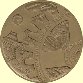 tandraderen boven haven. Kz. gezicht op tentoonstellingscomplex. Brons 60,5 mm., lichte vlekjes vz. Prachtig. € 50,00 |