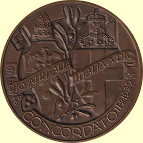 1929. Concordaat met Italië en herstel wereldlijk gezag paus.
