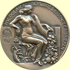 Schwarz's Essencefabrieken. Vz. zittende vrouw met hoorn des overvloeds,