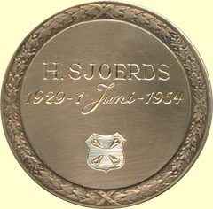 Op naam van H. Sjoerds, 25 jarig dienstverband. Zilver 50 mm., Polak —. Prachtig. € 200,00 |