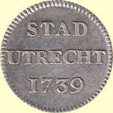 Duit 1739. Afslag in zilver van 3,99 gram. PW 5111.2; CNM 2.44.21; HPM Su 20.3. Ruim prachtig. € 100,00 |